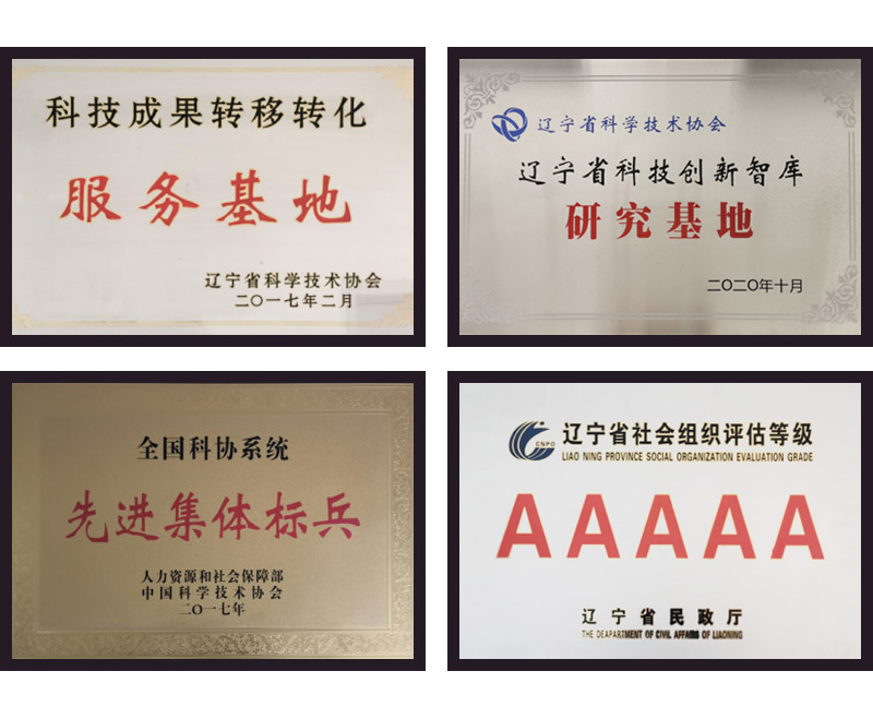 曾获国家人社部、中国科协“先进集体标兵”,是辽宁省首批5A级社会组织。承接政府转移职能与公共服务试点示范学会,辽宁省科技成果转移转化服务基地,辽宁省科技创新智库研究基地…