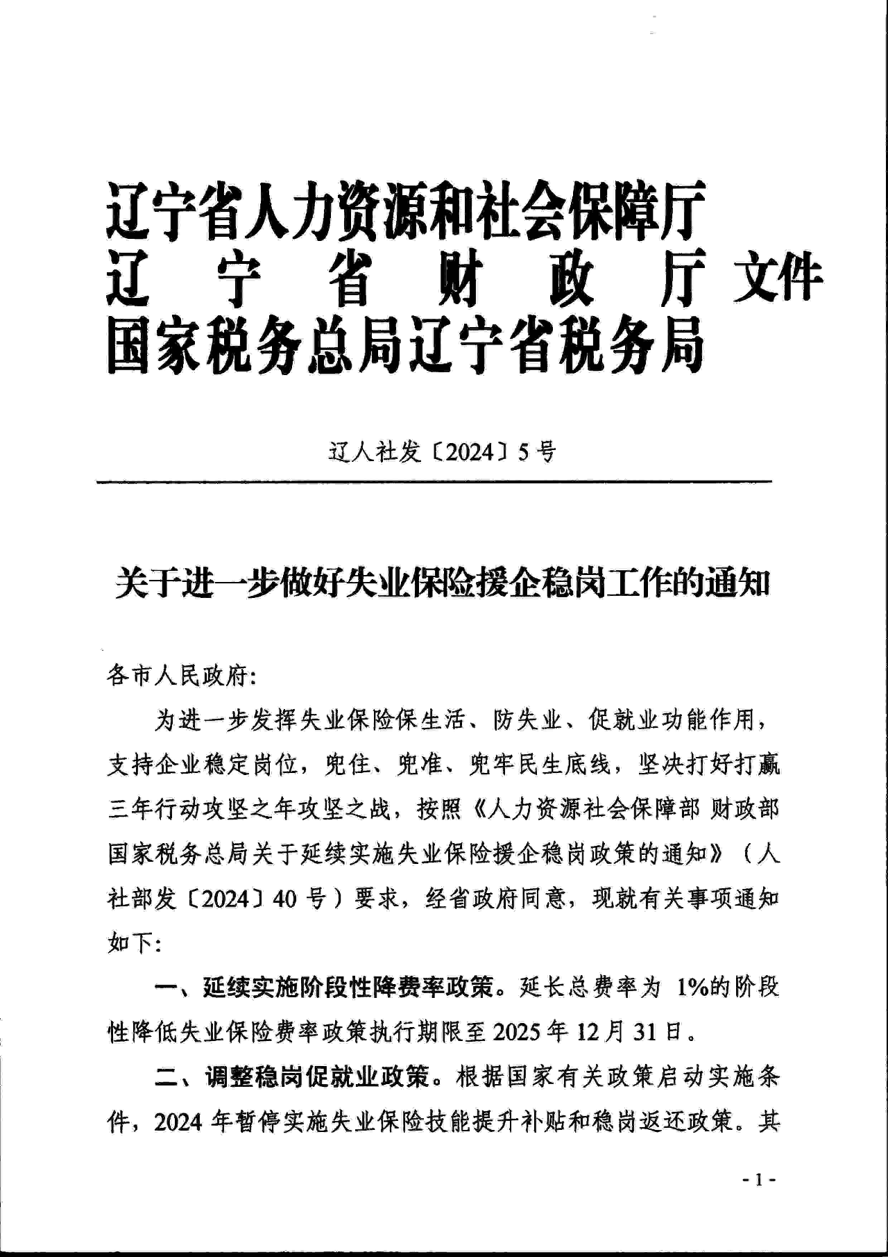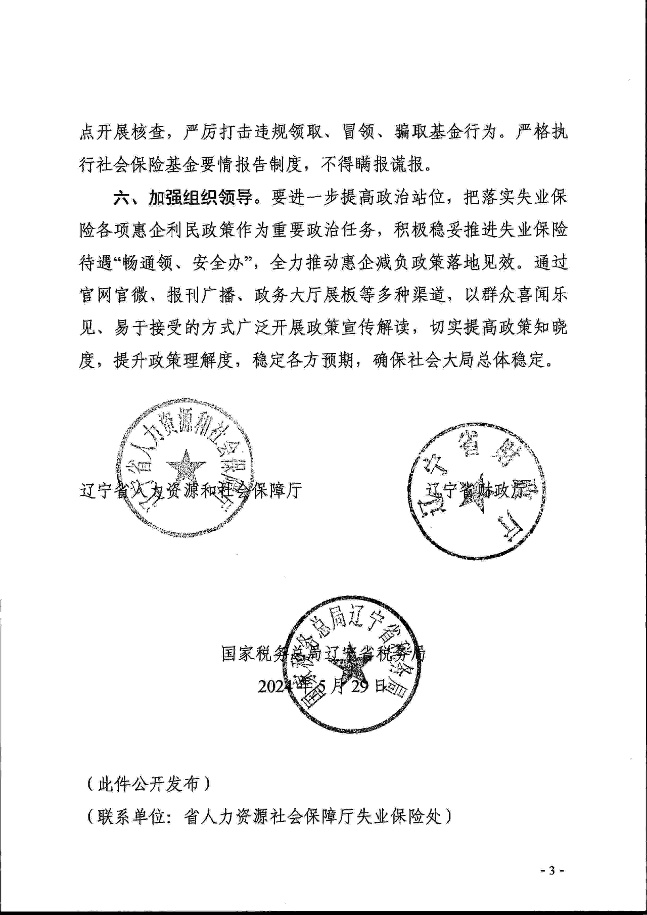 辽宁省人社厅 财政厅 国家税务总局辽宁省税务局《关于进一步做好失业保险援企稳岗工作的通知》